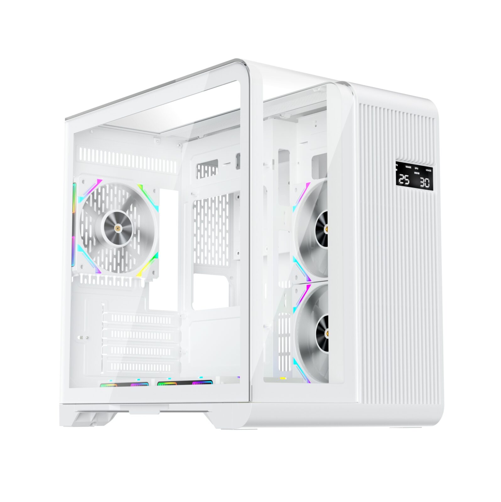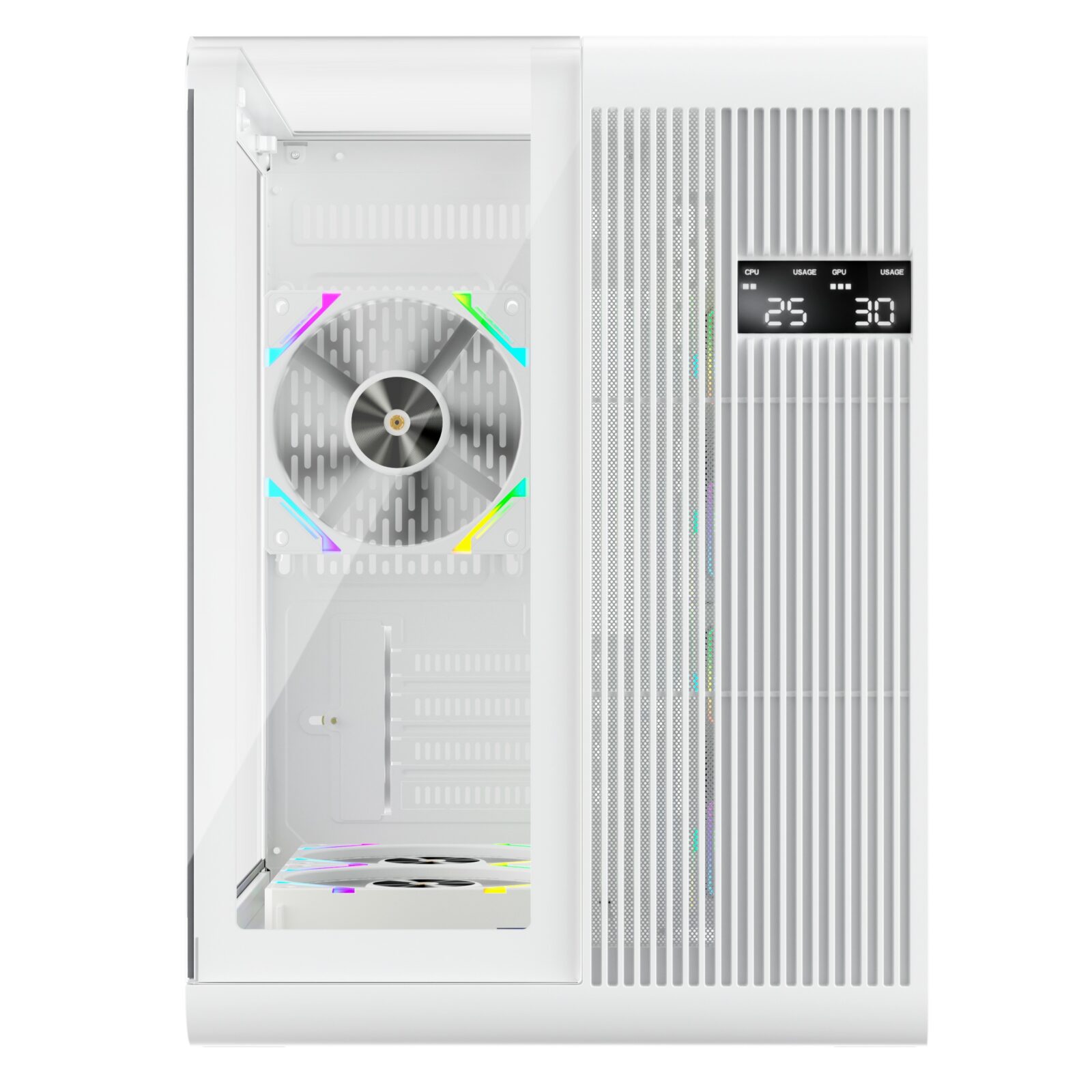 Carcasa 1stPLAYER® Gaming RT5-Wh, afisaj digital, 3 ventilatoare aRGB infinity efect, telecomanda, Micro-ATX, alb