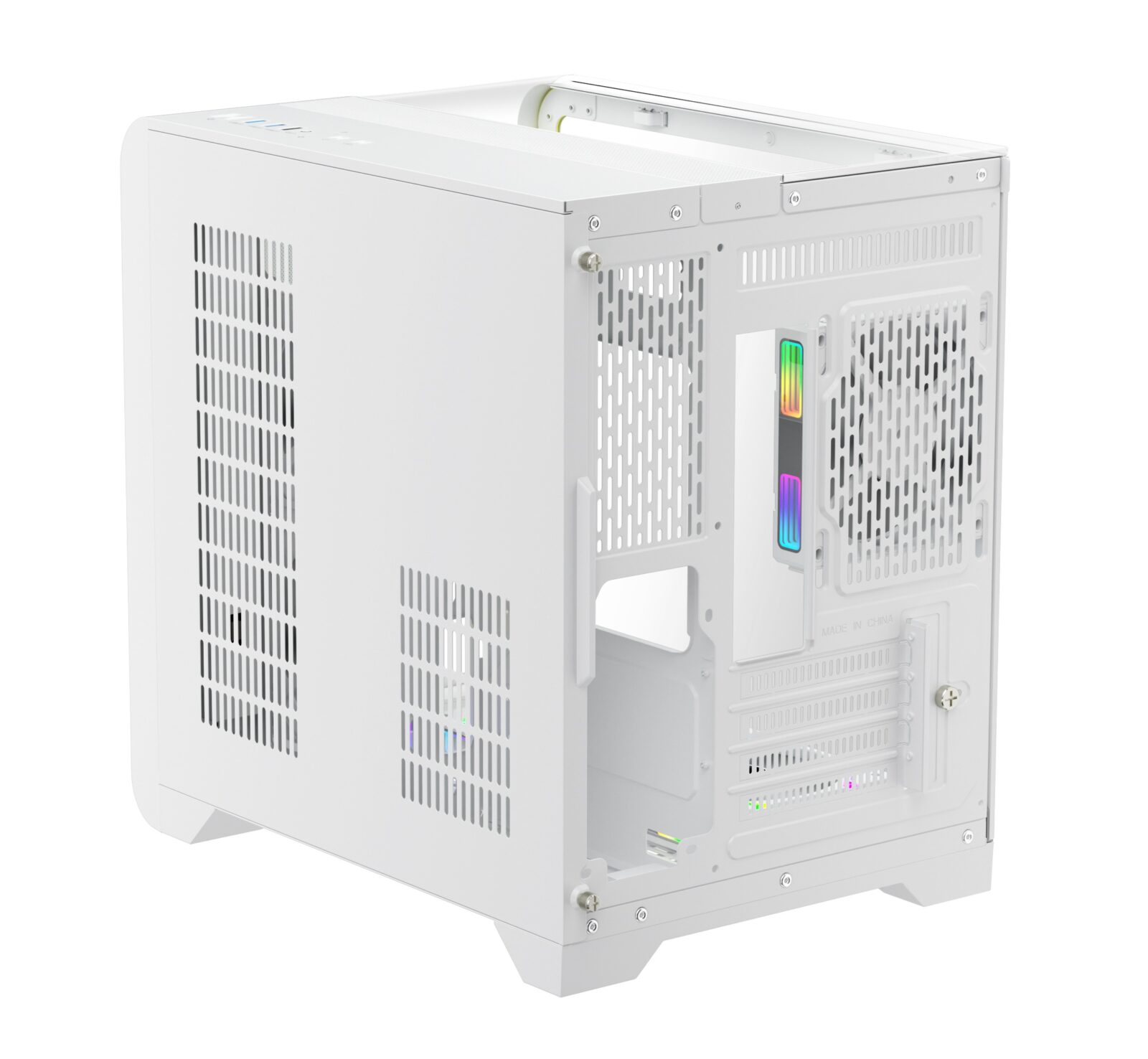 Specificații: Carcasa 1stPLAYER® Gaming RT5-Wh, afisaj digital, 3 ventilatoare aRGB infinity efect, telecomanda, Micro-ATX, alb