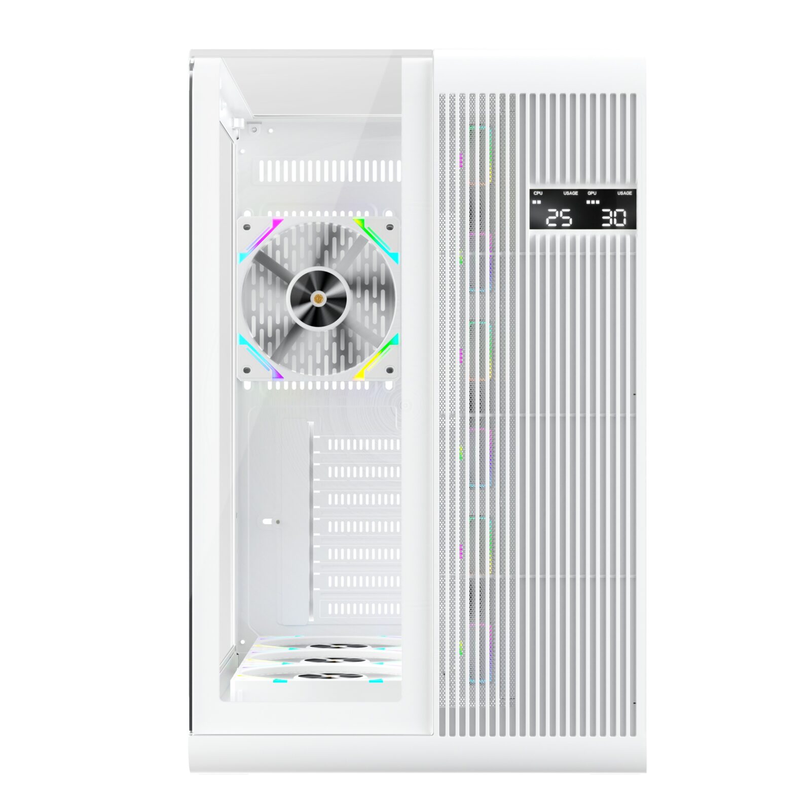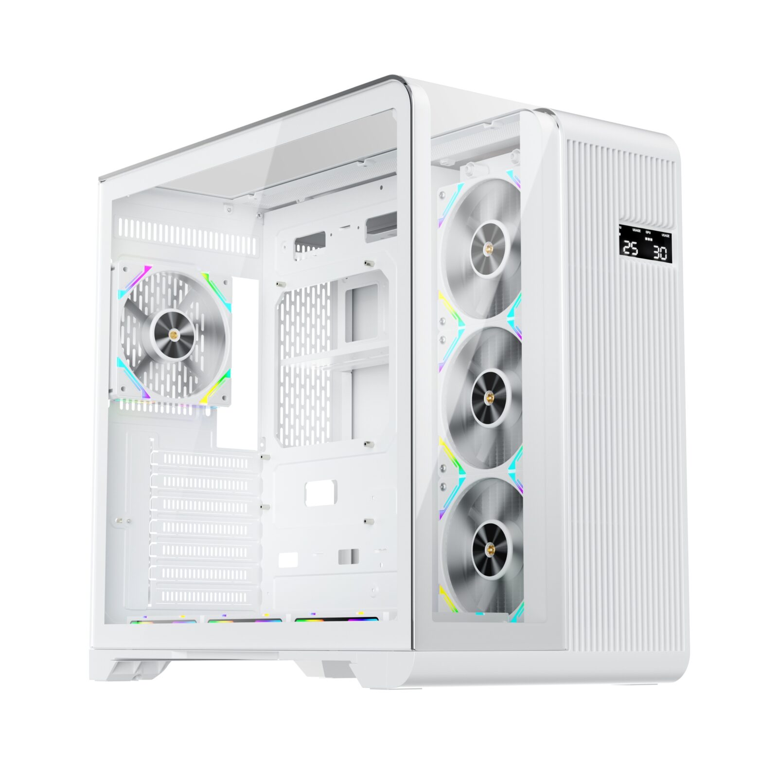 Carcasa 1stPLAYER® Gaming RT7-wh, afisaj digital, 4 ventilatoare aRGB infinity efect, telecomanda, ATX, alb
