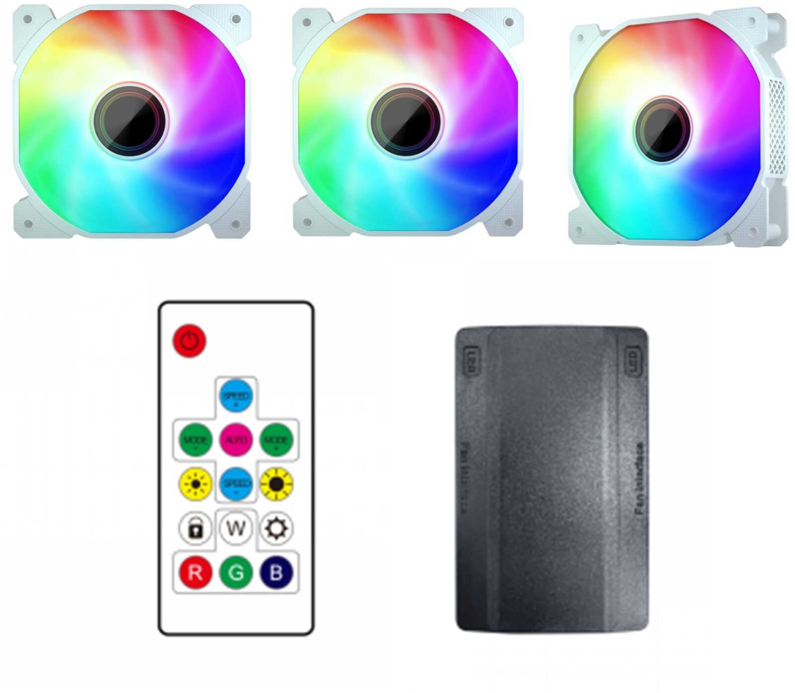 Set 3 ventilatoare 1stPlayer® Combo FIS-wh aRGB, controller si telecomanda, culoare alba