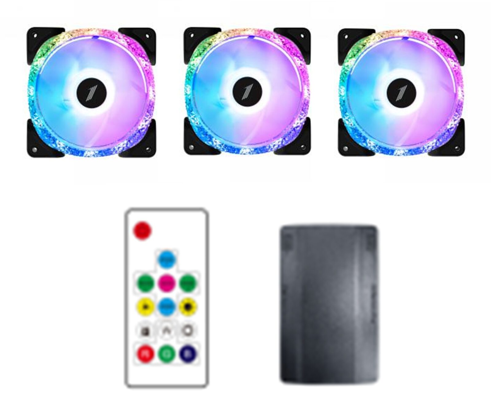 Set 3 ventilatoare 1stPlayer® Combo M1-D-bk aRGB, controller si telecomanda, culoare neagra