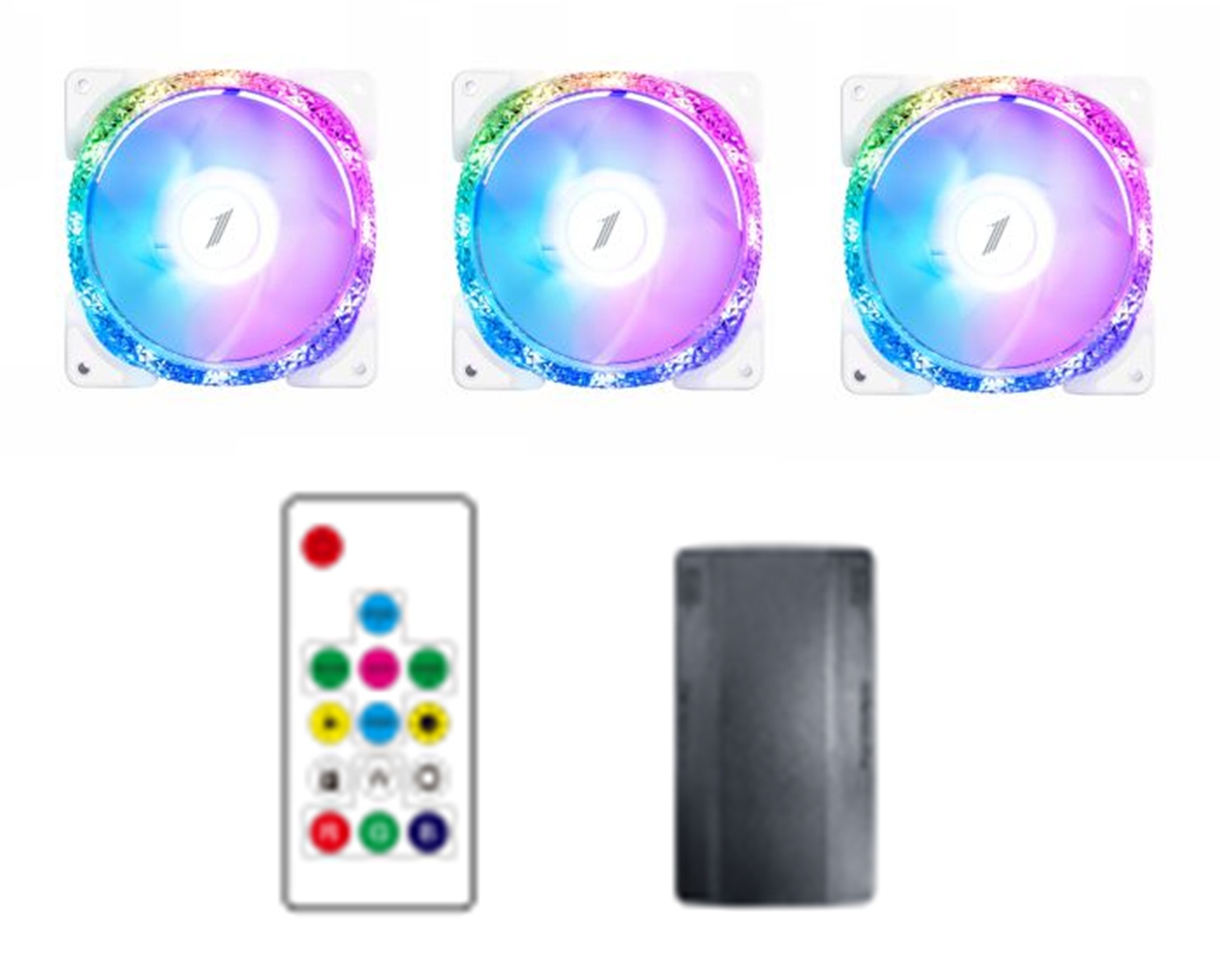 Set 3 ventilatoare 1stPlayer® Combo M1-D-wh aRGB, controller si telecomanda, culoare alba