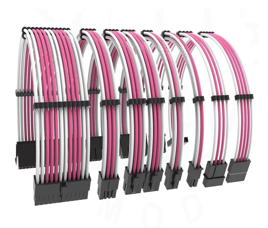 Set Prelungire Cabluri Sursa ATX, 1stPlayer® Premium, 30 cm, Steam Punk 5IN1, roz-alb