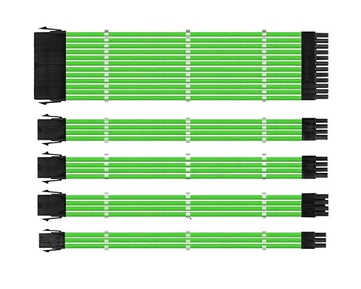 Set Prelungire Cabluri Sursa ATX, 1stPlayer® Premium, 30 cm, Steam Punk 5IN1, verde neon